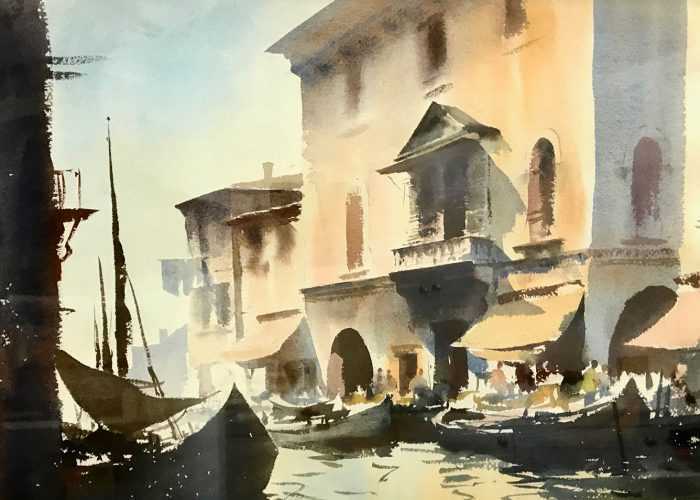 Subjects include landscapes and seascapes of featuring Norfolk, Suffolk, London, River Seine, Paris, Venice, Genoa, Delft,, Honfleur, Portugal, Normandy, Rome, Ponza, Lisbon and the River Thames. Further afield Morocco, Istanbul and Hong Kong were exhibited. More locally subjects included Pin Mill, Woodbridge, Ludham, Martham, River Orwell, Waxham, Aylsham and Blakeney.