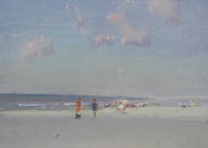 His work concentrates on light, mood and atmosphere with a limited palette.