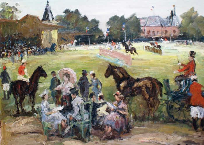 He sold direct, at art dealers and exhibitions. We have seen gallery labels from the Frost and Reed and provenance from auction houses including Bonhams Auctioneers, Sothebys Auction and Christies Auctions.